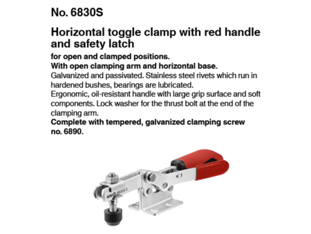 水平钩型肘节夹,带红色手柄和安 全锁